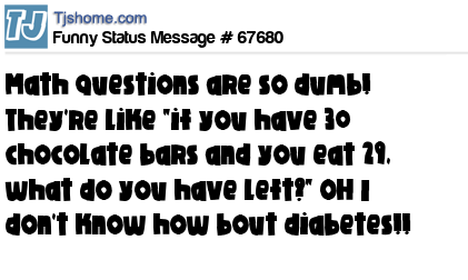 - # 76634 Elementary math problems are weird."'I had 10 chocolate bars and ate 9 What do I have now?'" Oh, I don't know, DIABETES MAYBE."