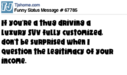 X If you're a thug driving a luxury SUV fully customized, don't be surprised when I question the legitimacy of your income.