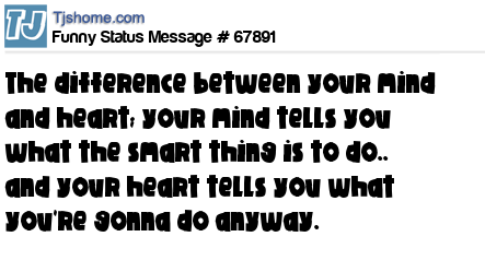 X the difference between your mind and heart; your mind tells you what the smart thing is to do.. and your heart tells you what you're gonna do anyway.