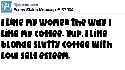 X I like my women the way I like my coffee. Yup, I like blonde slutty coffee with low self esteem.