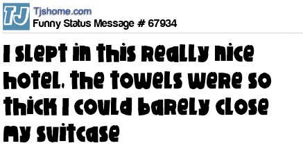 - # 48429 I stayed at a really nice, really fancy hotel this weekend. The towels were so thick I could hardly get my suitcase shut.