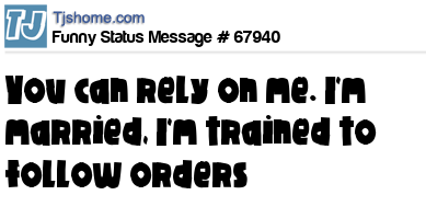 X says You can rely on me. I'm married, I'm trained to follow orders