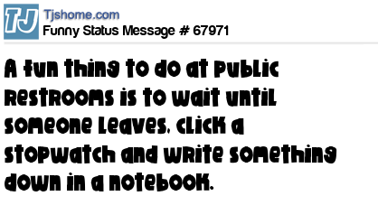 X says A fun thing to do at public restrooms is to wait until someone leaves, click a stopwatch and write something down in a notebook.