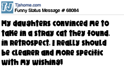 X says my daughters convinced me to take in a stray cat they found. in retrospect, I really should be clearer and more specific with my wishing!