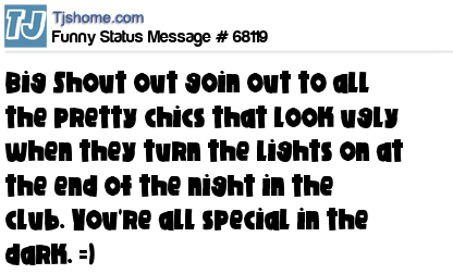 X says Big Shout out goin out to all the pretty chics that look ugly when they turn the lights on at the end of the night in the club. You're all special in the dark. =)