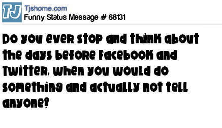 - # 89770 Do you ever stop and think about the days before Facebook, when you would do something and actually not tell anyone?