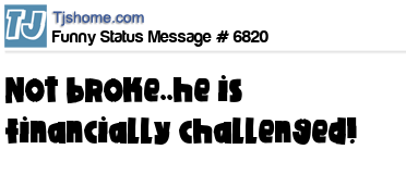 - # 168734 It's cute how you tell people you're broke they think you mean financially and not emotionally.