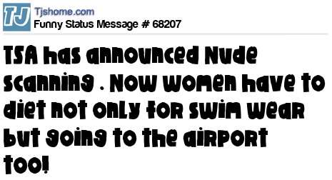 X is TSA has announced Nude scanning . Now women have to diet not only for swim wear but going to the airport too!