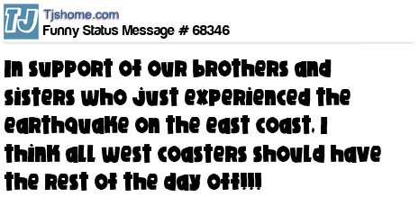 X in support of our brothers and sisters who just experienced the earthquake on the east coast, I think all west coasters should have the rest of the day off!!!