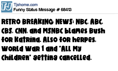 X RETRO BREAKING NEWS: NBC, ABC, CBS, CNN, and MSNBC blames Bush for Katrina. Also for herpes, World War 1 and "All My Children" getting cancelled.