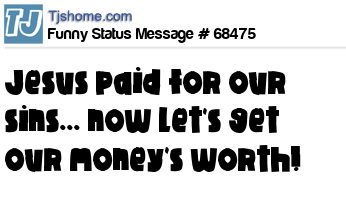 - # 122512 Jesus paid for your sins. Make sure he gets his moneys worth!
