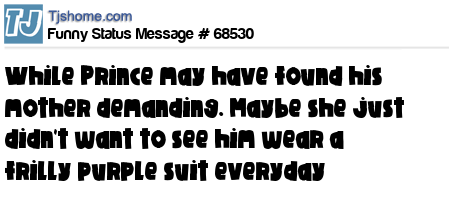 X says While Prince may have found his mother demanding. Maybe she just didn't want to see him wear a frilly purple suit everyday