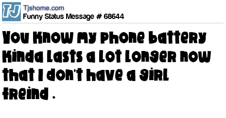 X says you know my phone battery kinda lasts a lot longer now that I don't have a girl freind .