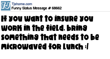 X  If you want to insure you work in the field, bring something that needs to be microwaved for lunch :/