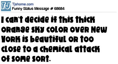 X is I can't decide if this thick orange sky color over New York is beautiful or too close to a chemical attack of some sort.
