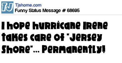 - # 68690 May the force of Hurricane Irene wipe out the entire "Jersey Shore" cast. Lord, hear our prayer!