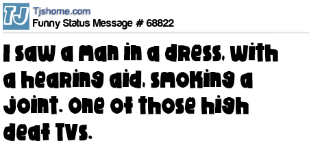 X I saw a man in a dress, with a hearing aid, smoking a joint. One of those high deaf TVs.