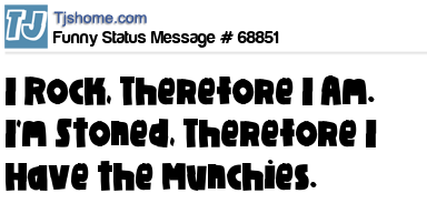 X I Rock, Therefore I Am. I'm Stoned, Therefore I Have the Munchies.