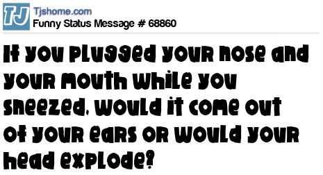 - # 27138 Wondering if you plugged your nose and your mouth while you sneezed, would it come out of your ears or would your head explode?