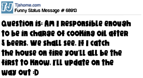 X is Question is: Am I responsible enough to be in charge of cooking oil after 5 beers. We shall see. If I catch the house on fire you'll all be the first to know, I'll update on the way out :D