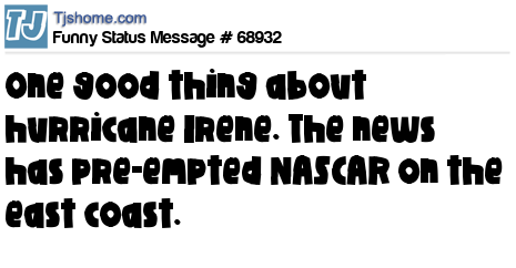 X One good thing about hurricane Irene. The news has pre-empted NASCAR on the east coast.