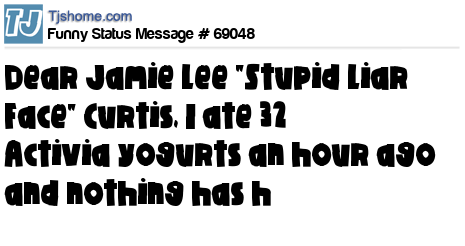 X is Dear Jamie Lee "Stupid Liar Face" Curtis, I ate 32 Activia yogurts an hour ago and nothing has h