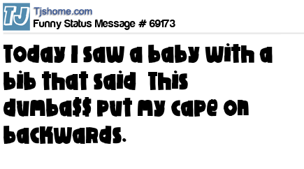 - # 98587 Today I saw a baby with a bib that said 'This dumbass put my cape on backwards.'