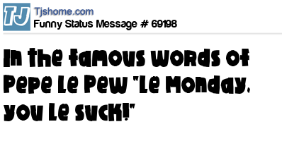 X says in the famous words of Pepe Le Pew "Le Monday, you le suck!"