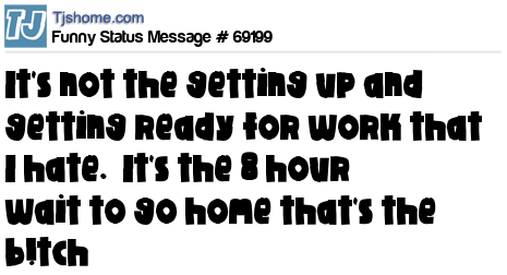 X is It's not the getting up and getting ready for work that I hate. It's the 8 hour wait to go home that's the b!tch