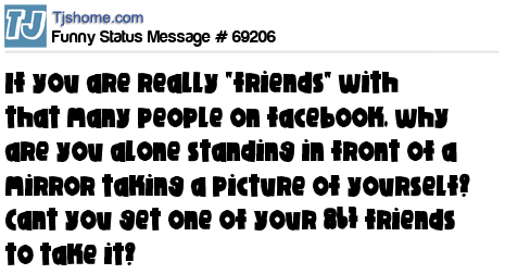 X is If you are really "friends" with that many people on facebook, why are you alone standing in front of a mirror taking a picture of yourself? Cant you get one of your 867 friends to take it?