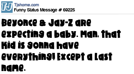 X Beyonce & Jay-Z are expecting a baby. Man, that kid is gonna have everything! Except a last name.