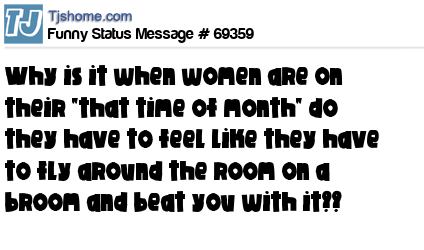 X is Why is it when women are on their "that time of month" do they have to feel like they have to fly around the room on a broom and beat you with it??