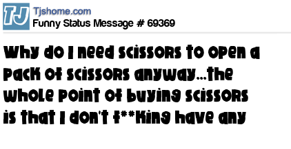 - # 20144 Why do I need scissors to open a pack of scissors? The whole point of buying scissors is that I don't f*cking have any!