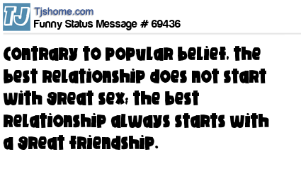 X says Contrary to popular belief, the best relationship does not start with great sex; the best relationship always starts with a great friendship.