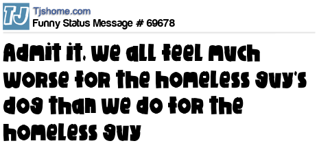 X says Admit it, we all feel much worse for the homeless guy's dog than we do for the homeless guy