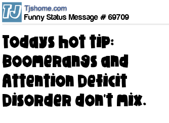 - # 149613 If you have attention deficit disorder, throwing boomerangs isn't for you.