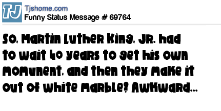 X So, Martin Luther King, Jr. had to wait 40 years to get his own momunent, and then they make it out of white marble? Awkward...