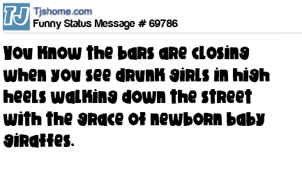 X is You know the bars are closing when you see drunk girls in high heels walking down the street with the grace of newborn baby giraffes.