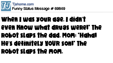 X is When I was your age, I didn't even know what drugs were!" The robot slaps the dad. Mom: "Haha! He's definitely YOUR son!" The robot slaps the mom.