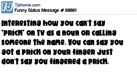 X Interesting how you can't say "prick" on TV as a noun or calling someone the name. You can say you got a prick on your finger just don't say you fingered a prick.