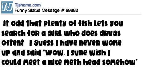 X it odd that plenty of fish lets you search for a girl who does drugs often? I guess I have never woke up and said "Wow, I sure wish I could meet a nice meth head somehow"