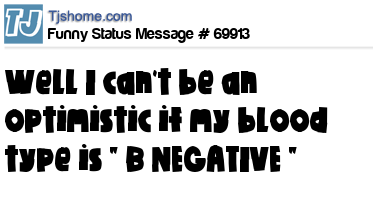 X is Well I can't be an optimistic if my blood type is " B NEGATIVE "