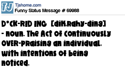 X says D*CK-RID·ING² [dik,rahy-ding] - noun. The Act of Continuously OVER-praising an individual, with intentions of being noticed.