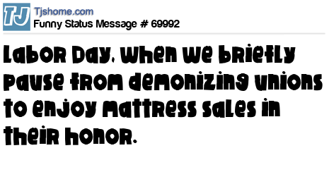 X  Labor Day, when we briefly pause from demonizing unions to enjoy mattress sales in their honor.