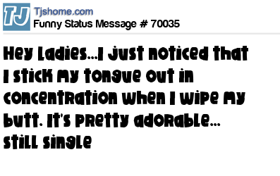 X is hey Ladies...I just noticed that I stick my tongue out in concentration when I wipe my butt. It's pretty adorable... still single