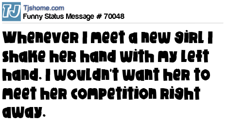 - # 46487 Whenever I meet a girl I always greet her with my left hand...I dont want her to meet the competition