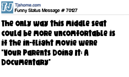 X says The only way this middle seat could be more uncomfortable is if the in-flight movie were "Your Parents Doing It: A Documentary"