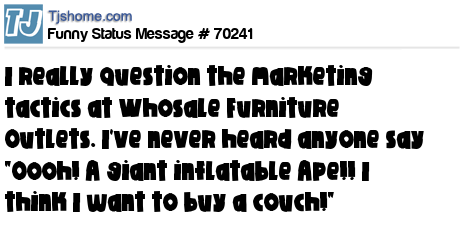 X I really question the marketing tactics at Whosale Furniture Outlets. I've never heard anyone say "Oooh! A giant inflatable Ape!! I think I want to buy a couch!"