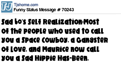 X Sad 60's Self Realization:Most of the people who used to call you a Space Cowboy, a Gangster of Love, and Maurice now call you a Sad Hippie Has-Been.
