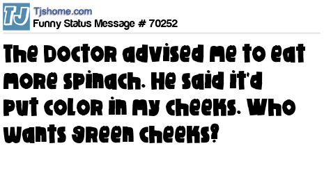 X The Doctor advised me to eat more spinach. He said it'd put color in my cheeks. Who wants green cheeks?